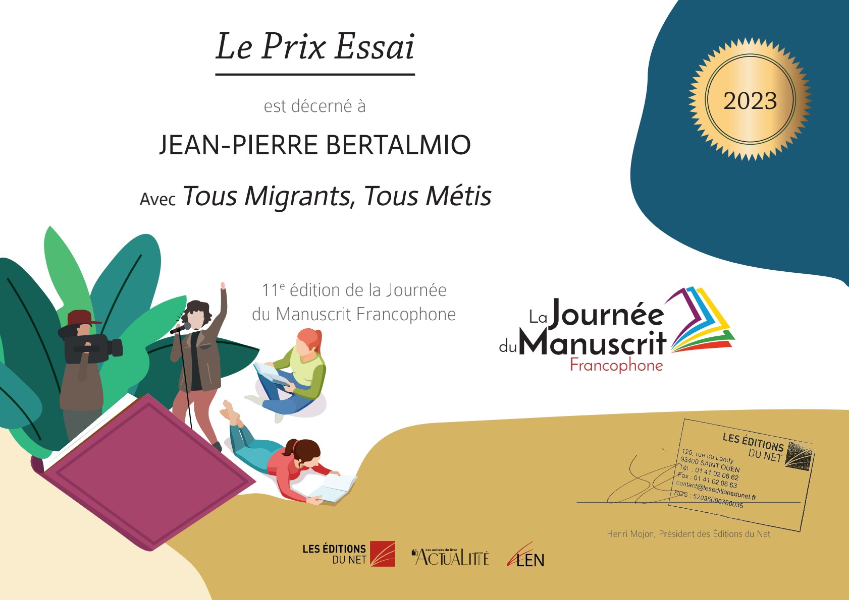 On m'a décerné le prix de l'essai à là Journée du Manuscrit Francophone